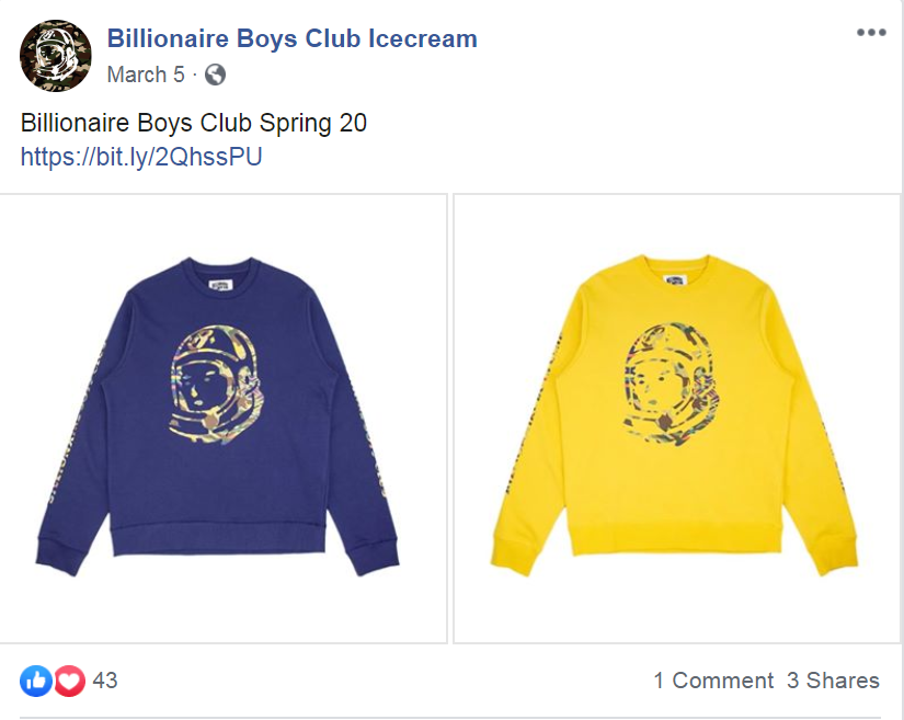 下面给大家分享两个Bbcicecream的Facebook贴文,给大家带来一些发帖灵感: